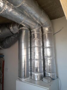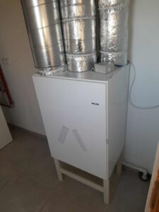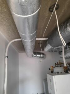 Montaż rekuperacji w budynku jednorodzinnym w okolicach Warszawy. Projektowany strumień powietrza 330 m3/h . Instlacja oparta na centrali Vallox 149 CFI z wymiennikiem aluminiowym . Instlacja wyposażona w podójny układ tłumików , tłumiki proste oraz elastyczne firmy Lindab.